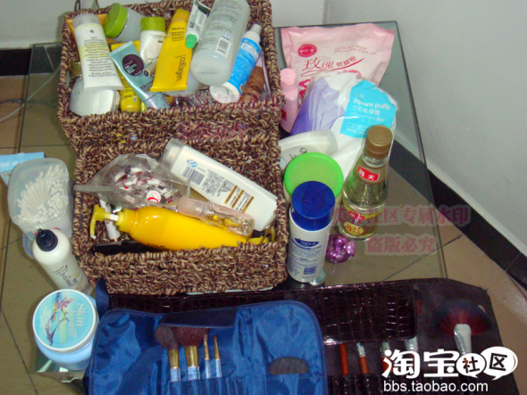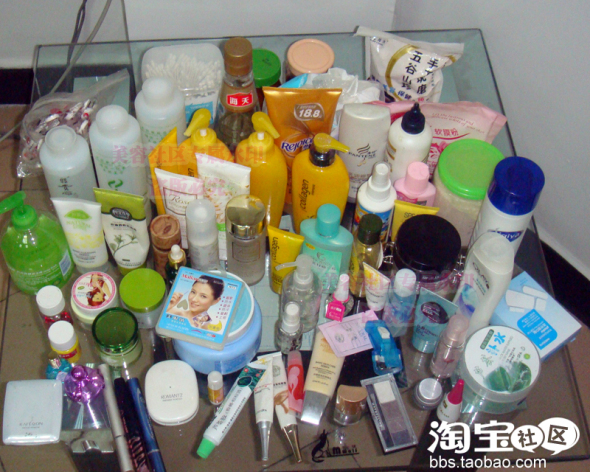 里面包括化妆品,护肤品,内调的,洗刷的都有