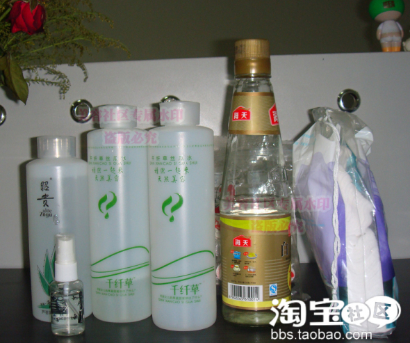 小瓶子里的是千纤草的水,用来喷水的。