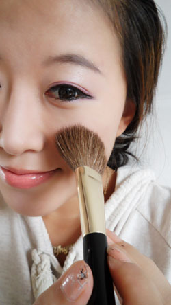 最后打腮红,颜色不要太红,太粉,一点就行。