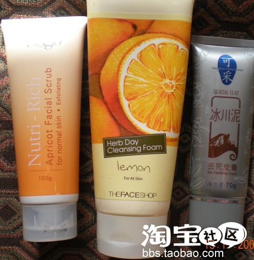 1、bioglo nutrl rich 杏仁磨砂洁面膏,马来西亚的品牌,里面的磨砂成分都是纯天然的,但是我的脸角质层很薄,一般我都用来磨身上,纯植物的,比较健康哦。好多水疗香薰spa馆都用该产品哦,品质保证。