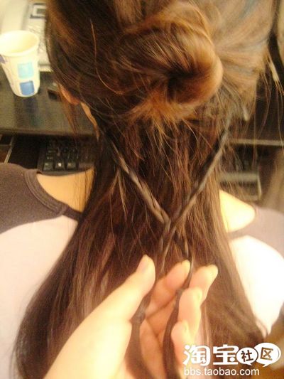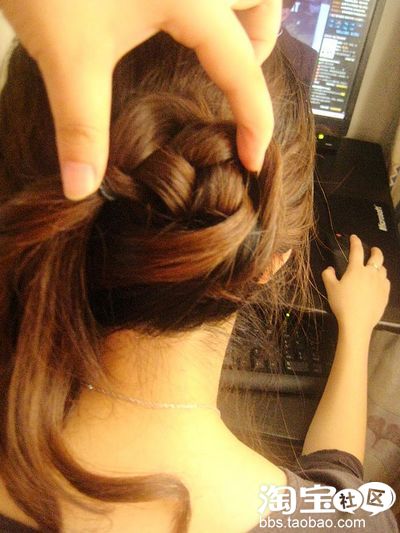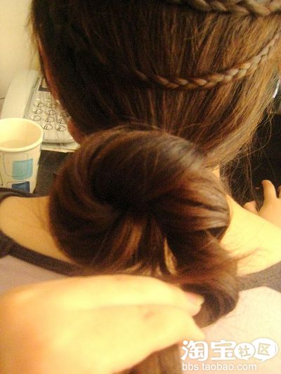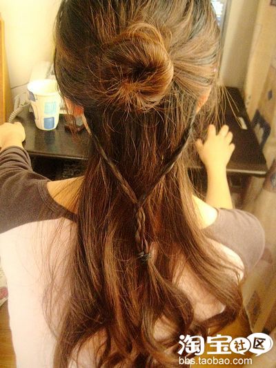 最后将它盘起 盘到一半用夹子固定 留下部分头发 !