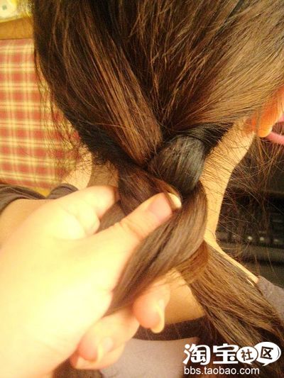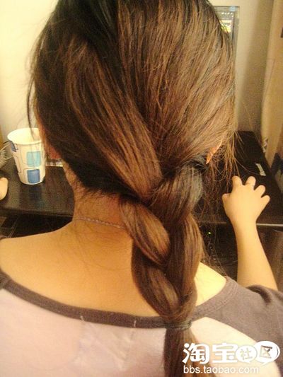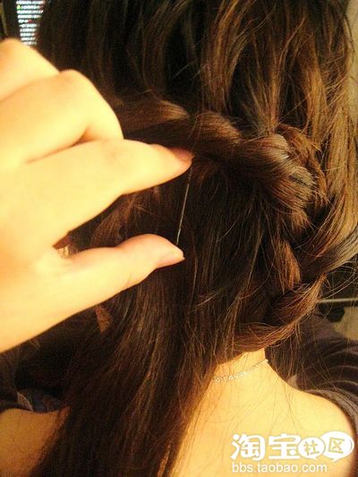 编一半即可 用皮筋固定,将辫子向上绕半圈固定即可