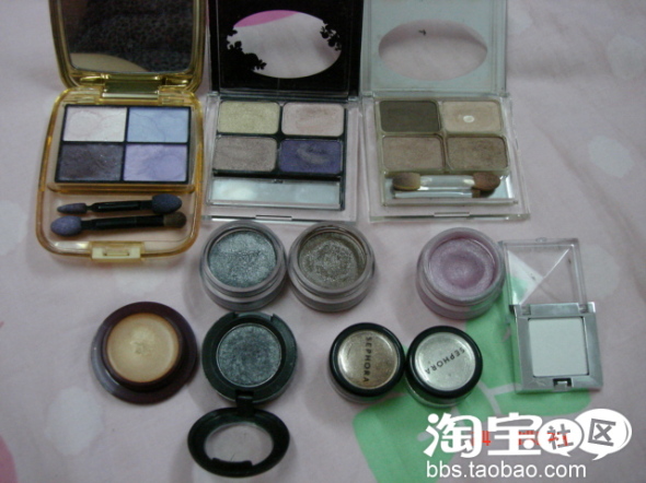 中排:1,2,3都是同事从阿姆斯特丹的小店里淘回的,HEMA牌子的,真的很好用,膏状的,很容易推开,很闪亮。而且很便宜哦,3欧不到,和人民币30一个。超值,推荐。我的三个颜色是粉紫,咖啡,银灰。