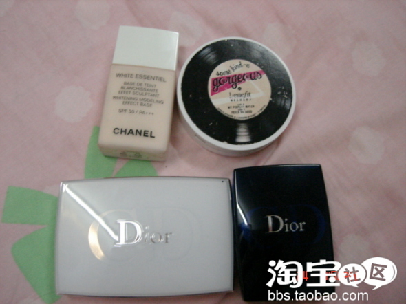 右边是benefit的唱片粉底膏,用了挺久,但是现在已经很少用它了,因为怕一天到了下午会暗沉。
