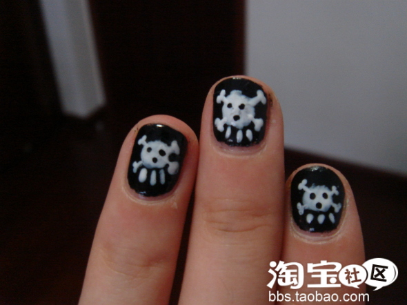看了很久的帖,今天我也来尝试下,教大家一款超酷骷髅美甲