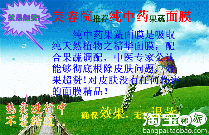 美容院推荐纯中药果蔬面膜,吸取纯天然植物之精华面膜,确保效果,无效退款!