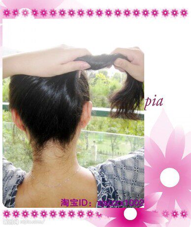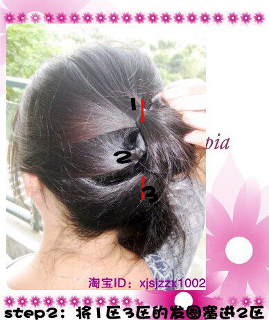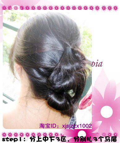 step1:头发分上中下3区,每区都扎发尾,形成发圈