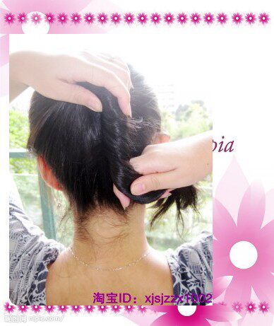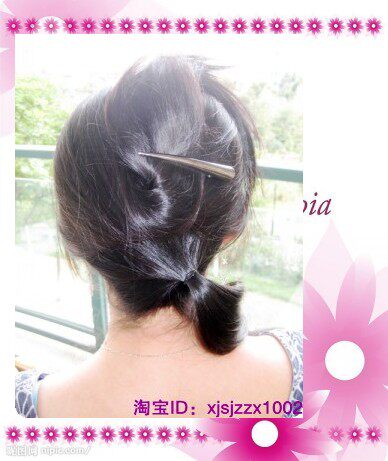 头发层次较多者,可先以橡皮圈绑出马尾,拉松约三根指宽后再盘起,掉落的发须不需刻意收整,也别有一番自然的味道。