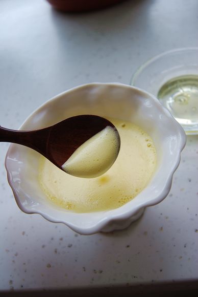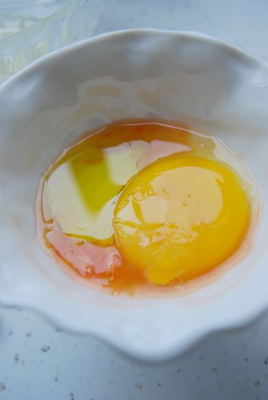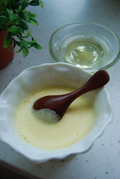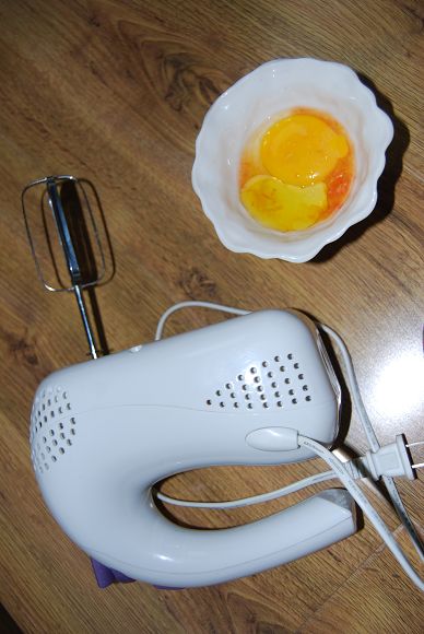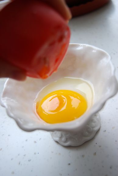第一步:打蛋,蛋清和蛋白建议分开,因为有不同用处,一般一个蛋就足够了!