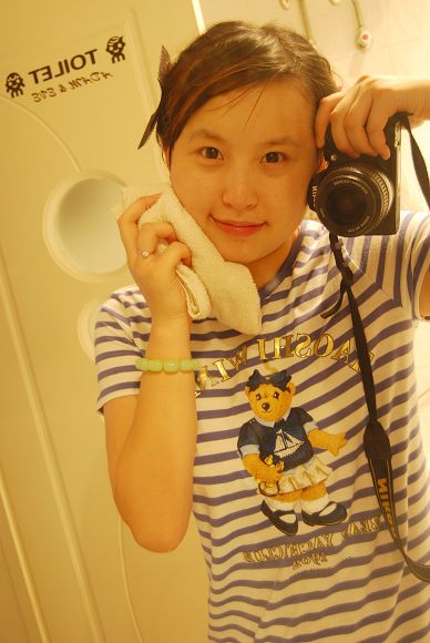 刚洗干净脸,头发侧面还湿漉漉的。忽略俺滴头发吧,根里黑色,发梢黄黄哦