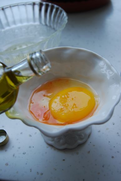 番茄蛋黄酱,和蛋清分别容器里,准备好备用!