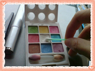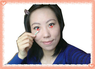 刚才将到1/3,现在我们说下剩下的2/3,为了让眼睛有神,这2/3可以用白色带点珠光的眼影,或者眼线笔来完成。我今天是直接用棉签沾眼影粉,因为可以比较方便的和前面提到的黑眼线混和,不那么突兀。