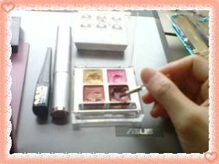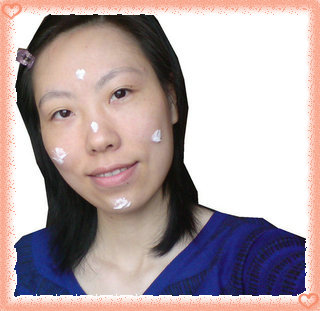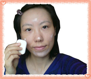 2:接着是上粉底液,粉饼也可以。但我觉得粉底液比较方便,还是5点法,一定要均匀,特别注意眼袋,鼻翼,下颚,嘴角,发际线等,这些地方肤色会比较深。还有一点:别忘记脖子哦!