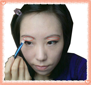 5:继续用白色带珠光的眼影,换个眼影刷,均匀的抹在眼盖上,如图: