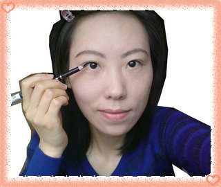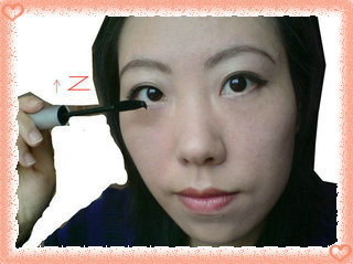 4:眼线是一定要画的,特别是小眼睛的MM,比如我。贴着睫毛根部画,有个技巧就是头稍微抬一下,眼睛往下看镜子,用手指轻轻提下眼皮,就好画了,今天因为要一只手拿手机,所以只能文字描述了。