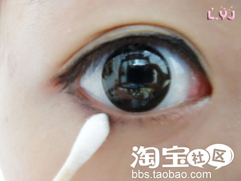 使用棉花棒稍微推晕开刚才画的下眼线。。