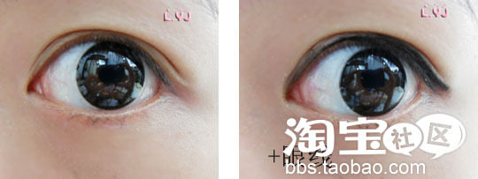 以上两张图只是简单的上了眼线和睫毛膏,效果就大不相同了。。