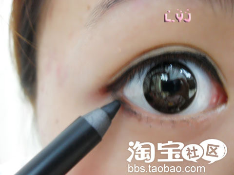 用眼线笔睫毛外延画一条粗的眼线,画的不好也不用怕的 。。