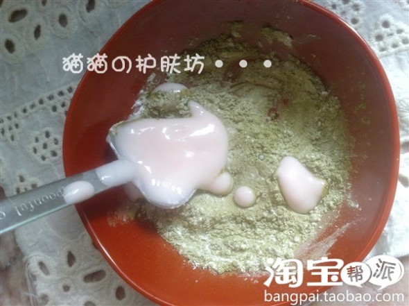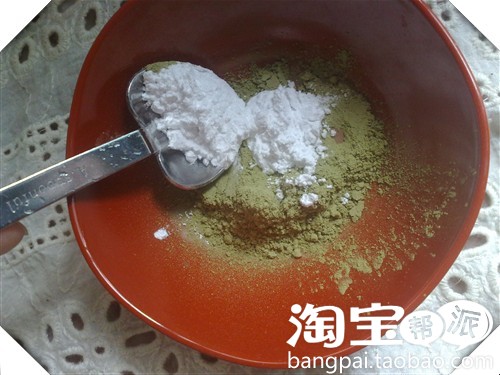材料:绿茶粉1小匙、绿豆粉1匙、白芷粉1大匙