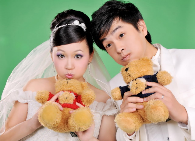 也很无奈,因为我和老公都是不太喜欢照相的人,平时很少照相,也不会摆造型,大多数的表情都是呆呆的