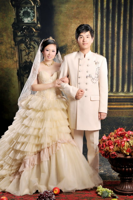可怜我160的身高和130的体重,礼服助理很委婉的表达了上述含义,但也不能便宜了这些黑心的资本家,我确着头皮选了一套白纱,