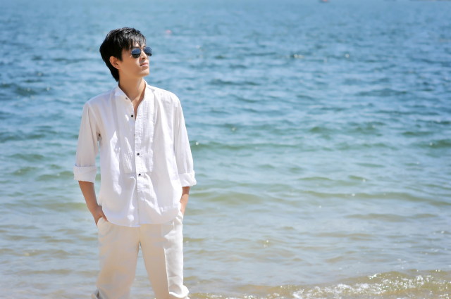 先是外景(在大连棒棰岛)图是改过的,摄影师弄上了颜色(具体我就不太懂了)反正那天天很晴,结果他改了之后弄得像阴天似的