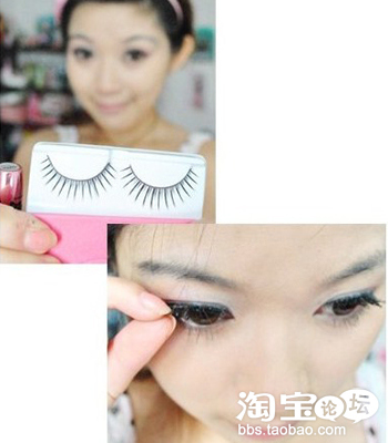 贴假睫毛,不要选择太夸张的款式。一般纤长就可以了