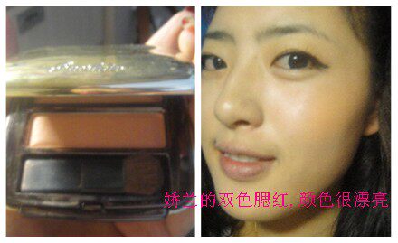 微笑以后由颧骨处往外刷哦,腮红打好了,可以省去修容哦,深得还要复杂的打伤面部侧影
