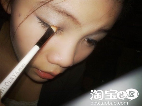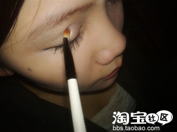 用1号,也就是比较银灰白的都可以,给眼窝都给打个底。