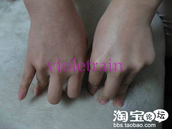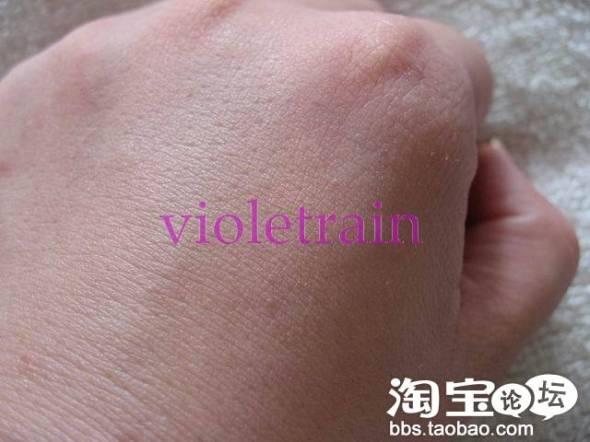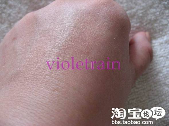 再对比没用过妆前乳和粉饼的右手肌肤的情况,使用以后肌肤明显有光泽、细白了很多。肌肤从使用前的泛黄、暗哑,变为通透、白皙,有光泽,效果非常明显。