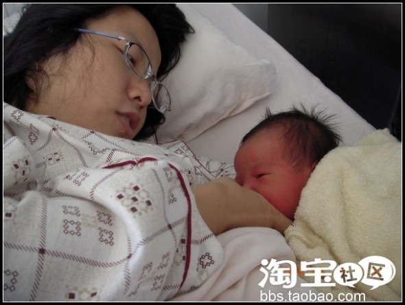 产后第三天,还躺在医院里,正在给宝宝喂奶……