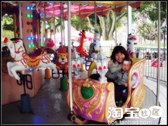 今年4月10日跟宝宝在中山公园玩旋转木马,下巴也开始尖了哦,其实此时已经恢复到产前状态啦,呵呵~