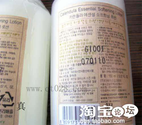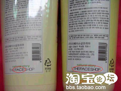 左边的是真的右边的是假的,the face shop中的face 颜色要深~~