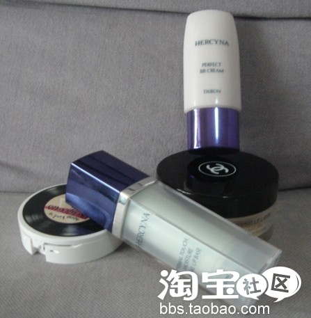 他们分别是调整和提亮肤色,并呈现完美肤质的海晳蓝绿隔、海晳蓝BB霜,benefit 黑胶粉饼及Chanel散粉。若嫌准备太多,个人建议其实光准备海晳蓝BB霜一支和散粉就足以达到改善肤质需求。