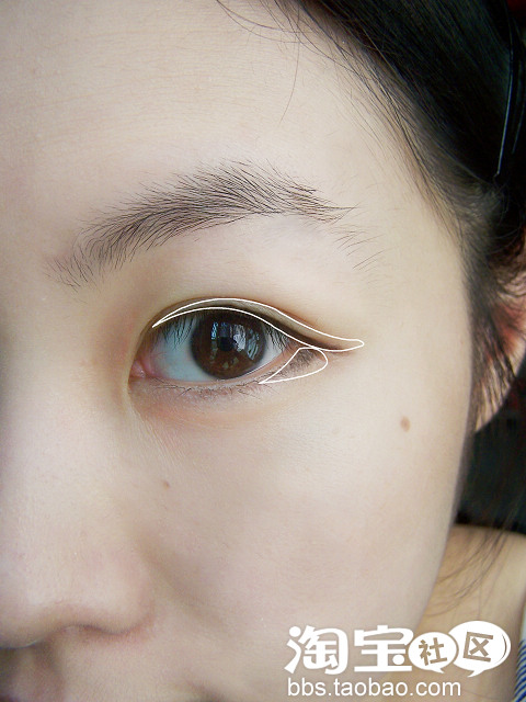 眼线就划在白线区内,下眼线最重要的位置就是尾处哦~直接影响到整个眼睛的轮廓