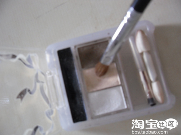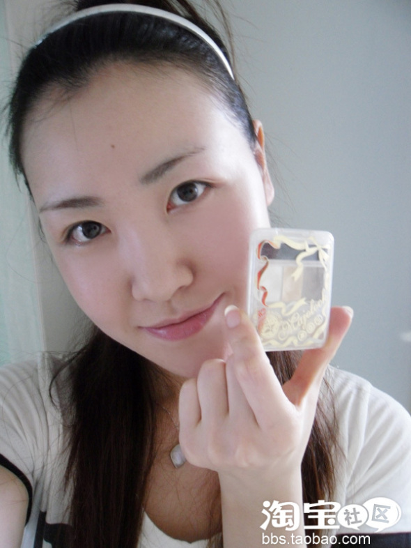 用散粉定下妆,我使用的这款是肤色的,用散粉刷均匀地刷遍整个脸部