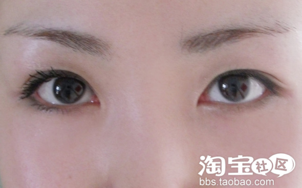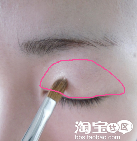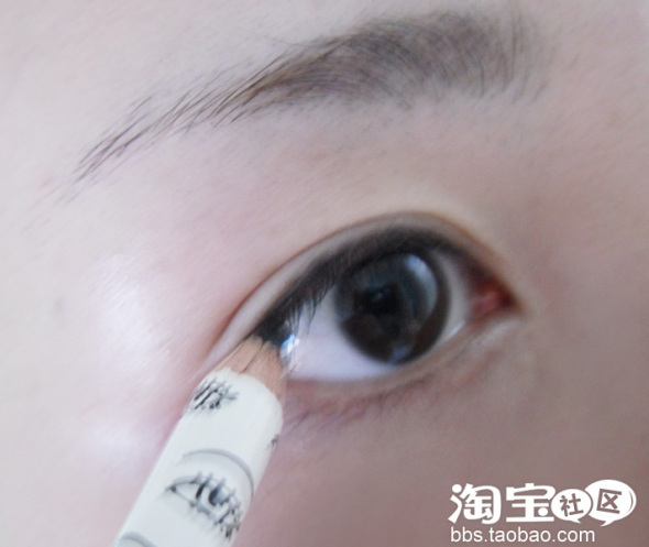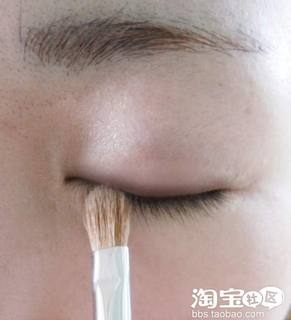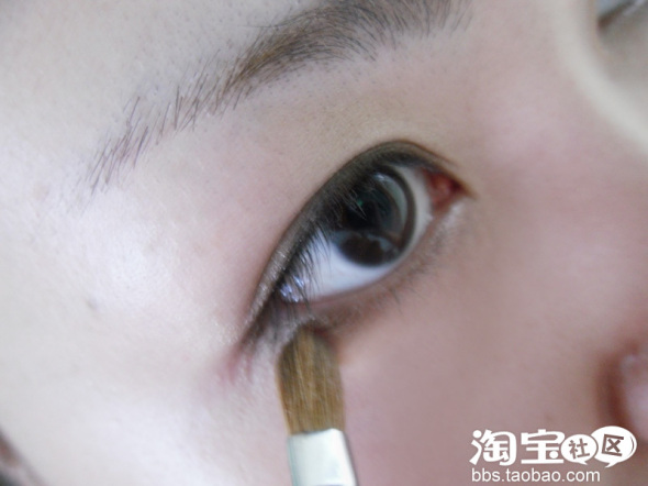 下眼线,三分之一的位置也刷上棕色眼影,扩大眼睛的视觉效果