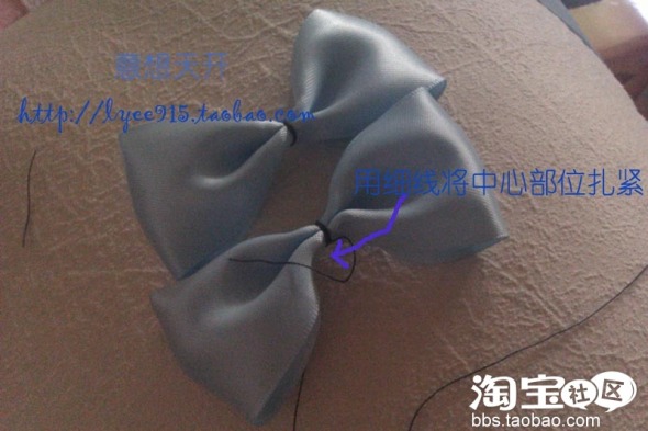 中间用细线扎紧,蝴蝶结的型大概出来啦,哇哈哈~~~