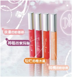 玛丽艳唇彩包括四个色系:浪漫的粉珊瑚、神秘的紫玛瑙、灿烂的橙水晶、纯情的粉珍珠,这其中一定会有一款适合你的唇上风情。水果般甜蜜丰盈的色泽,璀璨星光般的闪亮效果,特有的天然滋润配方,补充唇部所需营养,时刻光彩熠熠,展现你的时尚高雅、令人难以抗拒的诱惑。