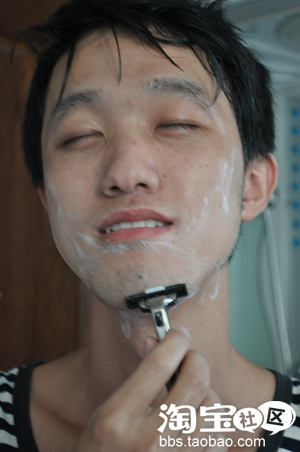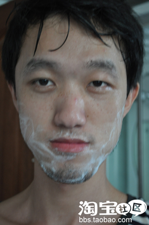二:剃须取少量发泡剂,置于胡子中