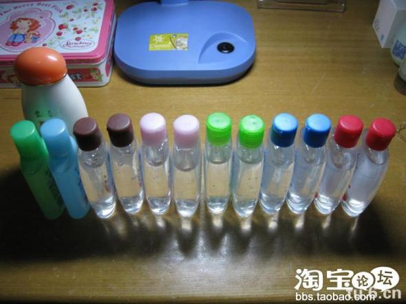 蓝色的是柔嫩甘油保湿露,绿色的是芦荟甘油保湿露,粉色的是珍珠甘油保湿露,红色的是护肤甘油保湿露,棕色的是灵芝甘油保湿露。看了一下后面的说明,大同小异,不过备注了红色的(适合干性皮肤使用)蓝色的(适合油性皮肤使用)。