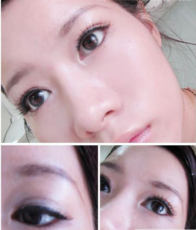 懒人的重 点在于,我底妆很薄,只上隔离霜和粉饼超快速的而眼影使用两色而已 ,所以只要涂抹开来 A淡色系眼影大块涂抹 B深色系涂抹到眼尾部分 再 加细细的眼线,和黏上假睫毛就大功告成啦。