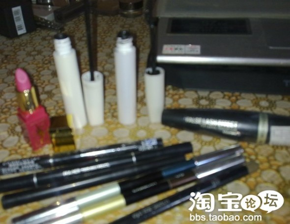 YSL唇膏的小样10#不错呢 悠莱的睫毛膏,第一个像梳子一样,第二个是弯的那种,悠莱的睫毛膏很不好卸妆呢,只有用它家的眼唇部专用的卸妆液才行,密丝佛陀睫毛膏,凯文老师推荐的百元彩妆产品里就有它呢,下面那几个都是眼线笔,推荐美宝莲的液体眼线笔,超好上色,卡姿兰双色眼线笔,配合眼影用不错,最下面那个是叮子推荐的眉笔,也可以当眼线笔用,赞!