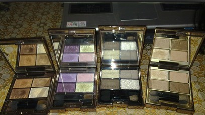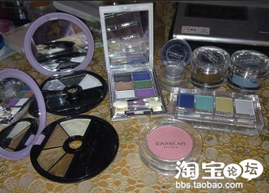 蓝瑟的大地色系的眼影,太上色了,凯芙兰的这个大力推荐!!!!让我有种用的是LUNASOL的感觉呢,不信的MM可以去试试哦,悠莱的眼影,大学军训后全班同学吃饭喝酒喝多了后买的,后悔,不过擦上很深邃,DHC的月光眼影,还好吧 当提亮的用了,蓝瑟的手工烤的眼影,推荐