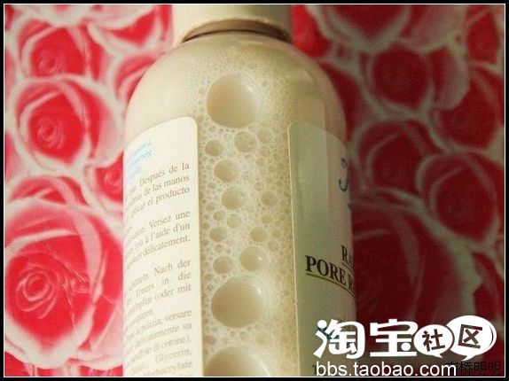 用力摇一摇瓶子,沉淀的白泥粉末全部融入到化妆水中,丰富的泡沫让我自然相信这水水里保留着丰富的营养成份。