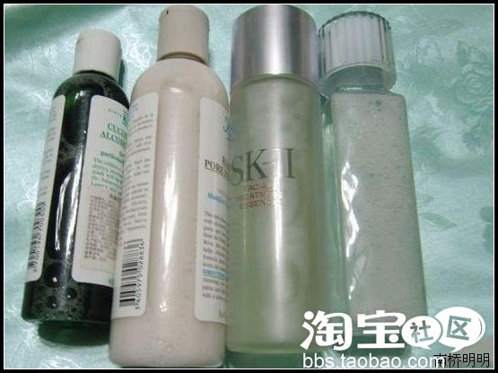 把这4个透明的水水用力摇晃后来对比下,就可以看到,sofina、sk2的泡沫丰富,要保留的时间长一些,很久不易消失,而小黄瓜水很快就会消失,白泥水居中。可见sofina、sk2都是高肌能水。