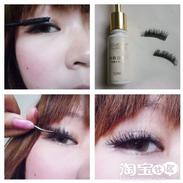 先刷本身的睫毛再贴假睫毛