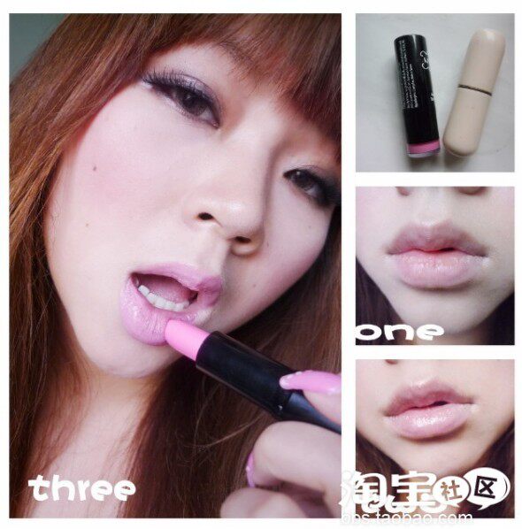 唇装部分依然是先上唇膏打底接着上口红
