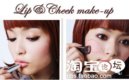 妆容tips:打腮红时,为了突出嘴唇的丰满效果,腮红最好打成椭圆形。