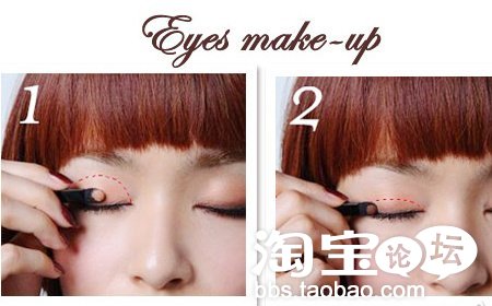 妆容tips:为了达到放大眼睛的效果,要使用不同颜色的眼影叠加的方法,让眼睛显得更加有层次感,因此要画两层眼影。